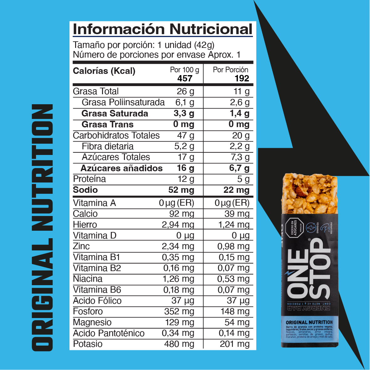 BARRAS ENERGETICAS ONE-STOP 42g. CON PROTEINA VEGETAL